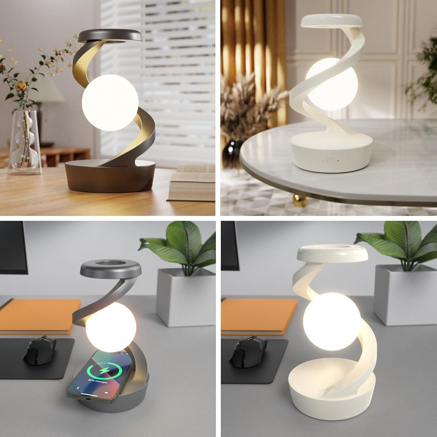 Lámpara LED Flotante 3D – Espiral Levitante con Carga Inalámbrica